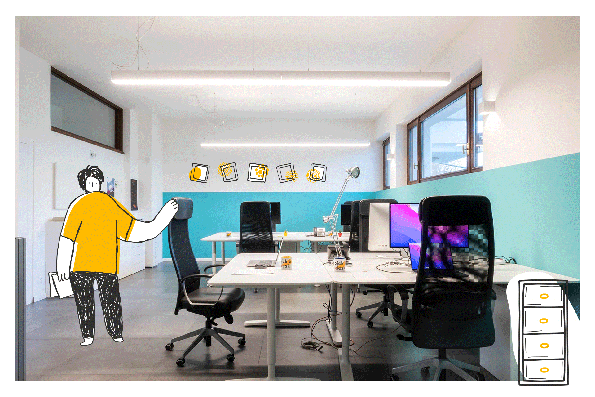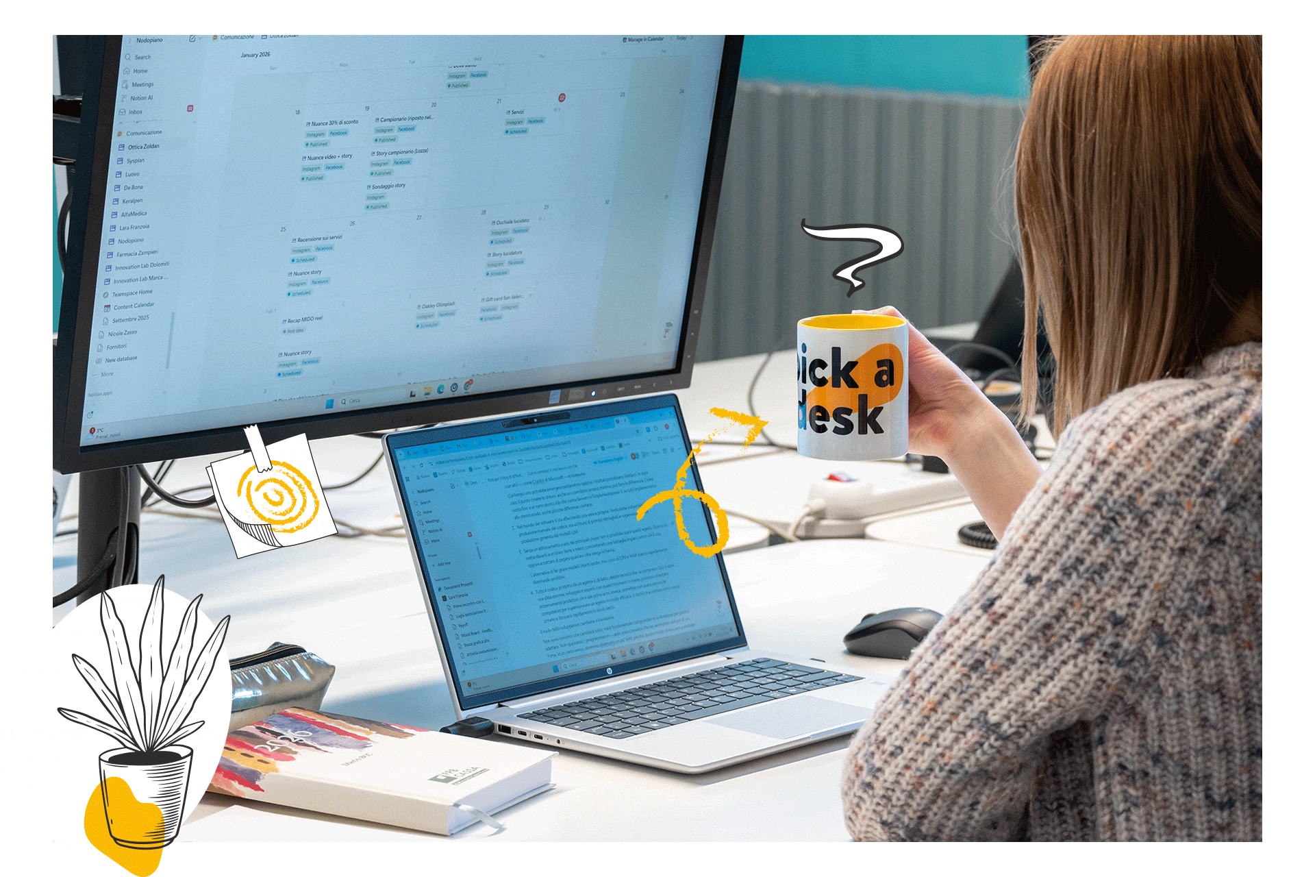 Pick a Desk è anche la sede di un’agenzia di comunicazione, Nodopiano. È un luogo vivo, creativo, dove le idee circolano e l’energia è quella giusta.